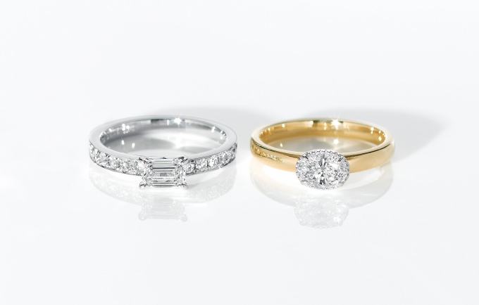 定番のラウンドブリリアントカットとはすこし違う、オーバル、エメラルドなどのファンシーカットをブライダルで楽しむ。定番の婚約指輪でないからこそ、長く身につけてもらえます。